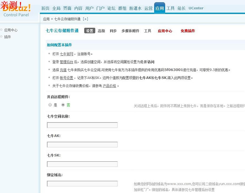 应用地址:http://addon.discuz.com/?@yunappshop_qiniu.plugin.34167