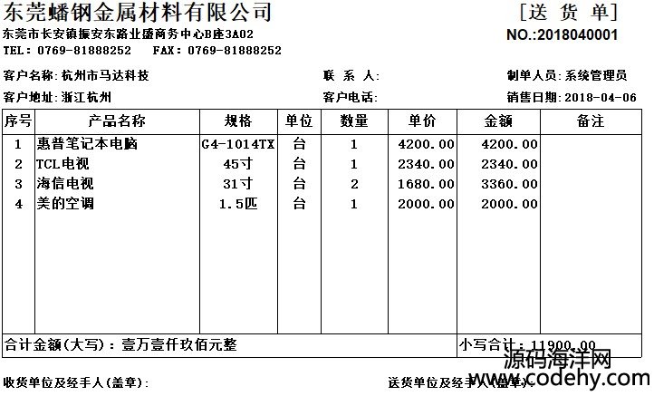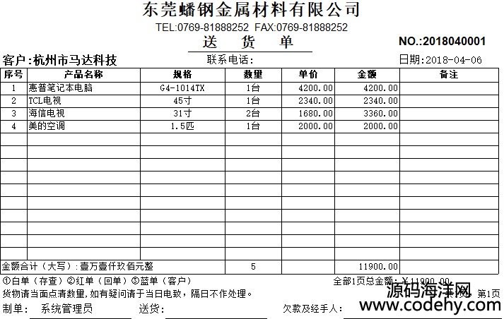 系统集送货单管理,产品管理,客户管理,月结单管理,数据分析,图表分析为一体。送货单号由系统自动生成(可按年+月+日+流水号)单号规则自己定义真正的方便实用。充分利用强大的数据库功能给工作带来的便利,配合强大的权限管理,真正的让您从此告别手写送货单和EXCEL做月结的烦恼,打印出整齐漂亮的送货单。