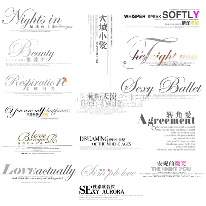影楼PS/婚纱儿童写真艺术中文/英文/文字/字体设计素材PSD模板