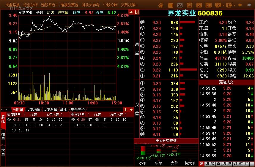 10档行情:传统的行情只有5档买卖盘,而大赢家Level-2可以提供10档买卖盘共计20个价位的数据资料,让您可以看到别人看不到的行情,抓住别人把握不了的机会!特别是涨停封单!