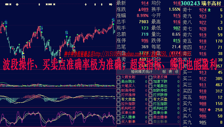4484-炒股软件决策版 股票趋势选股短指标BS买卖点 黑马线股池私募