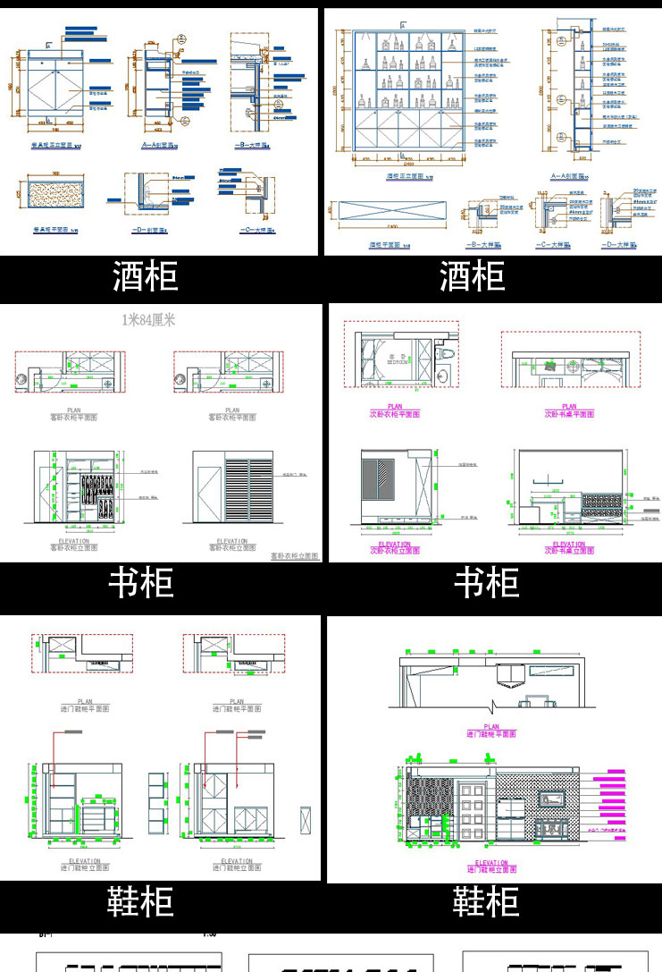 DWG格式 衣柜cad图纸设计源文件 书柜鞋柜酒柜楼梯中式欧式CAD图纸素材