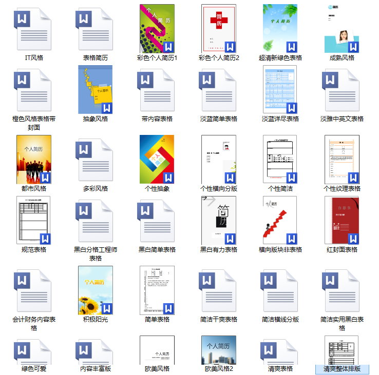 1.Word版简历模板:创意型13款,简洁型93款,详细型34款
