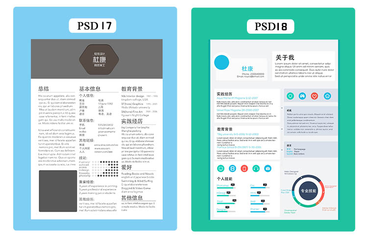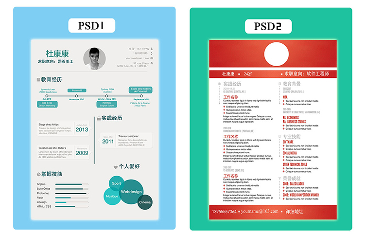 国外创意简历 汉化完整版个人简历PSD分层设计 word简历 带配置教程 三套样式