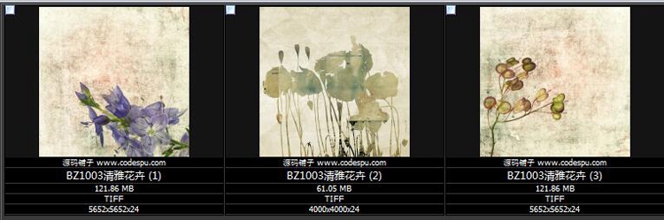 清雅花卉三联 装饰画素材图片 高清画芯图库