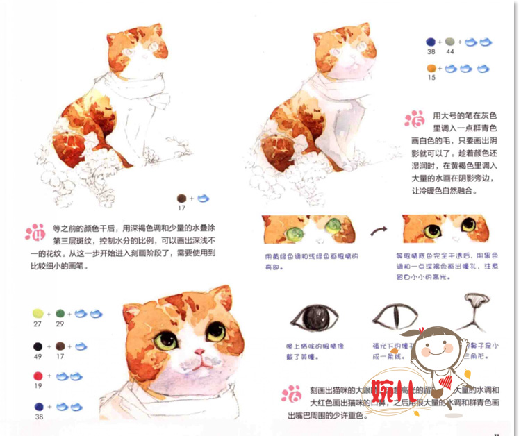 水彩手绘可爱动物猫咪绘水彩画教程水彩参考