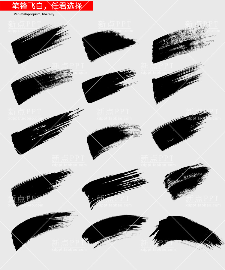 ps毛笔字体笔触设计矢量素材飞白溅墨笔画水墨书法中国风墨迹笔刷