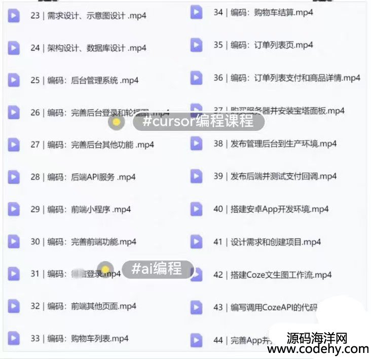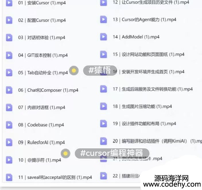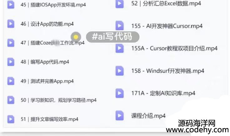 [五角星][五角星]共57节系统课程(课程目录见下图!!),赠送Cursor编程软件