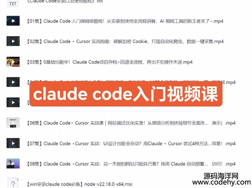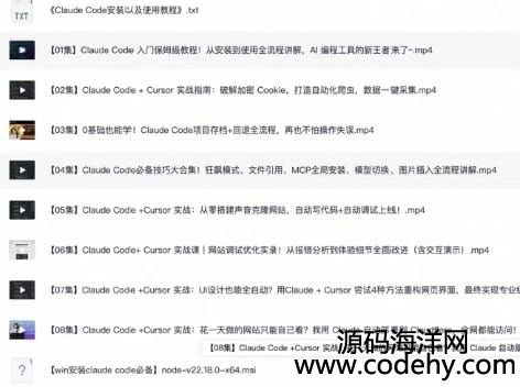 这是一套完整的《Claude Code 从入门到实战》高清视频教程,共8集,从环境安装到项目部署,带你从零基础小白成为AI编程高手。