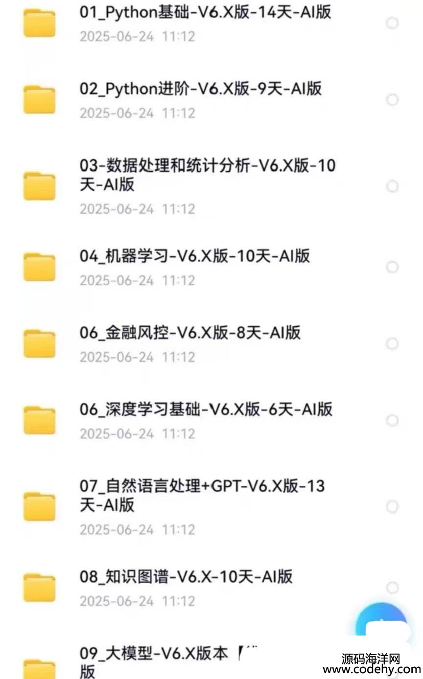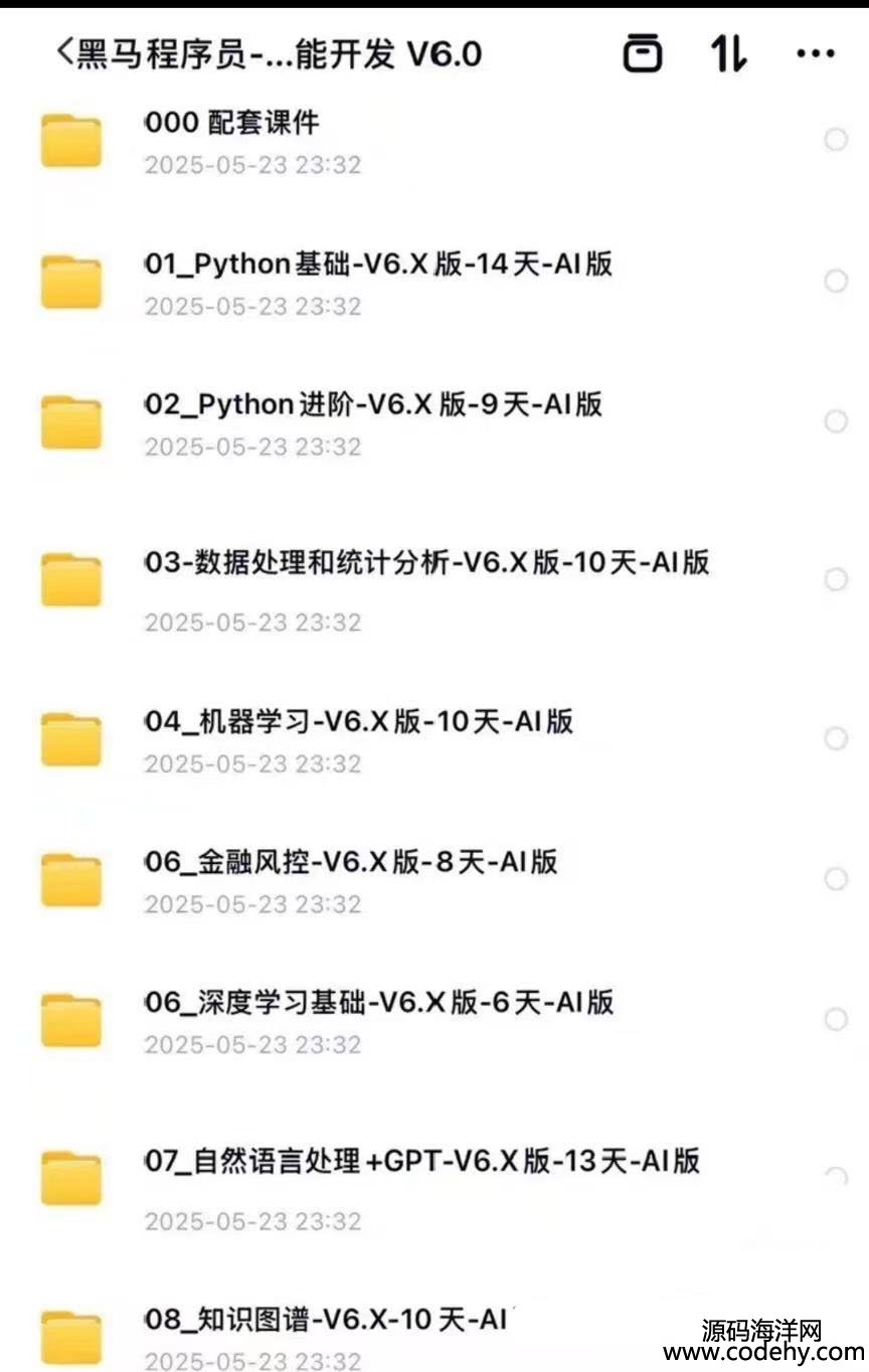 黑马程序员Python+AI人工智能全新2025完结的V6.0版本就业班,包括直播课+录播课+项目实战课,技术项目都是全新的,并非市面上其他的老旧版本拼凑,需要的滴滴!