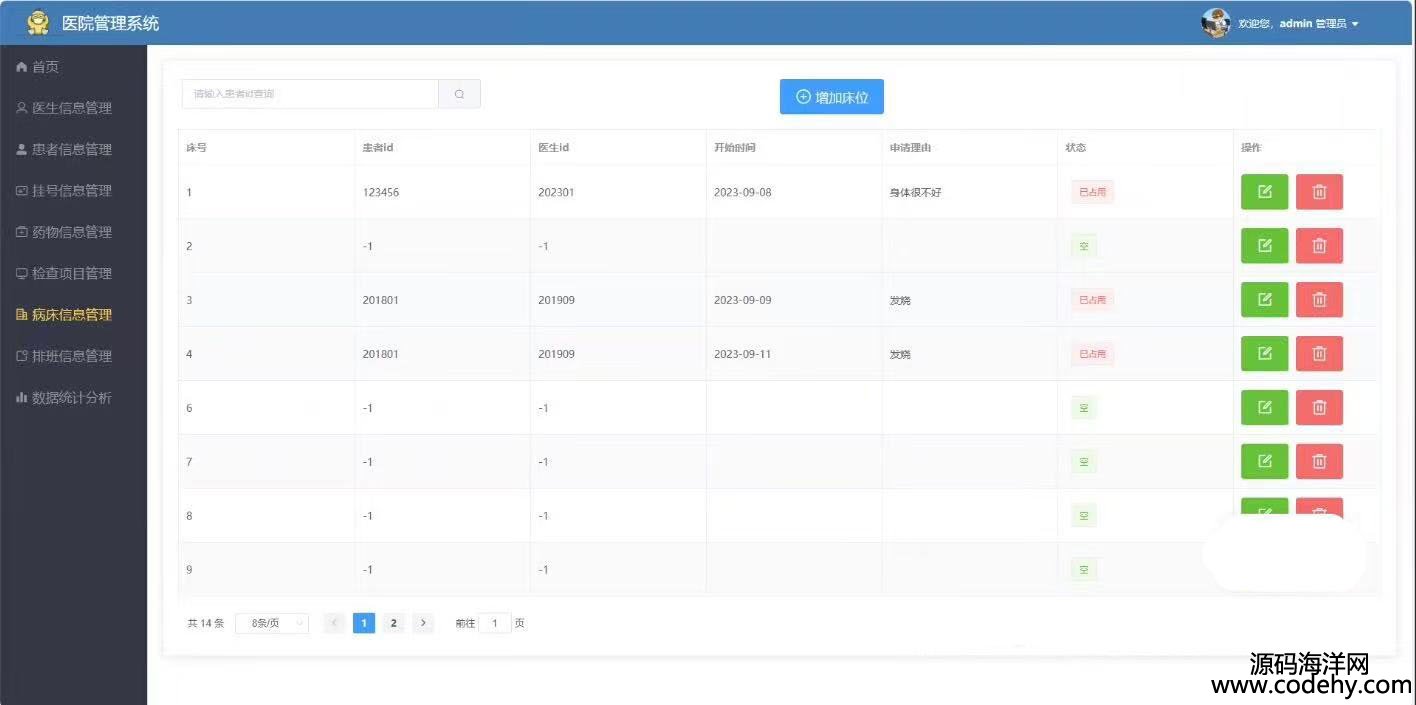 医生:登录、首页、今日挂号列表、历史挂号列表、住院申请管理、个人信息查询