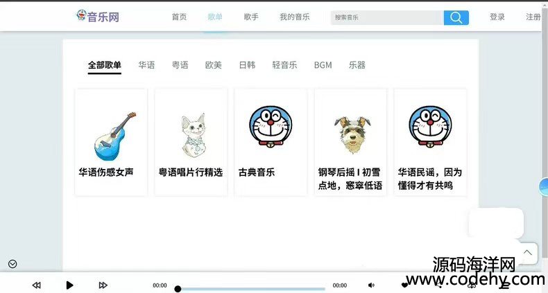 游客模块歌曲播放器播放歌曲、歌手列表、歌单列表、我的音乐、歌曲播放、歌曲收