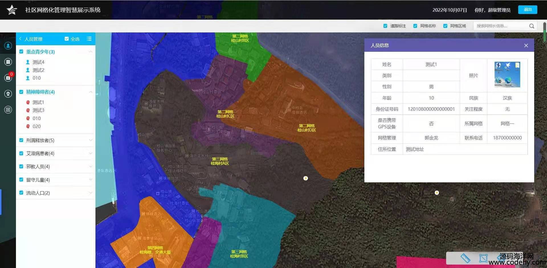 前台展示:网格化一张图,人员展示,房屋展示,事件展示,网格信息展示。