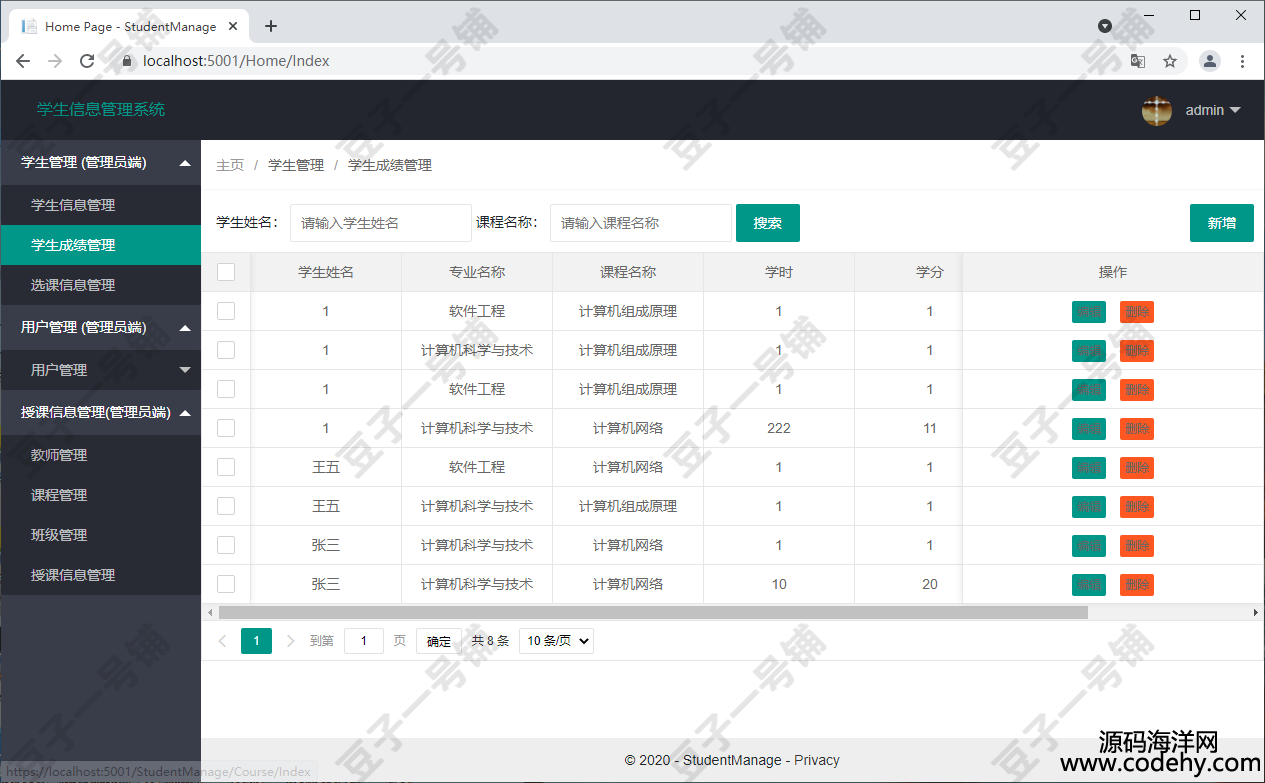 7231-C# asp.net 学生信息成绩管理系统 源码+数据库+设计文档