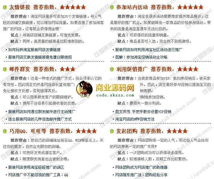 这是一套比较全面的店铺推广的汇集,如果你是一个新手,可以从中了解很多不错的推广方式。